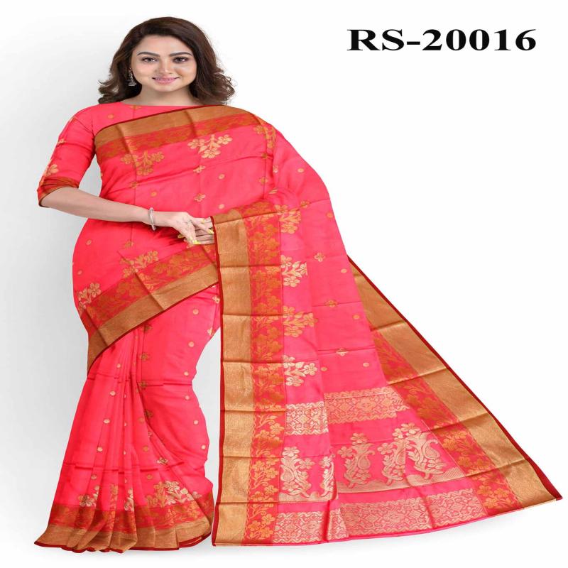 খুবই সফট টাঙ্গাইলের সিল্ক শাড়ি ব্লাউজপিস সহ