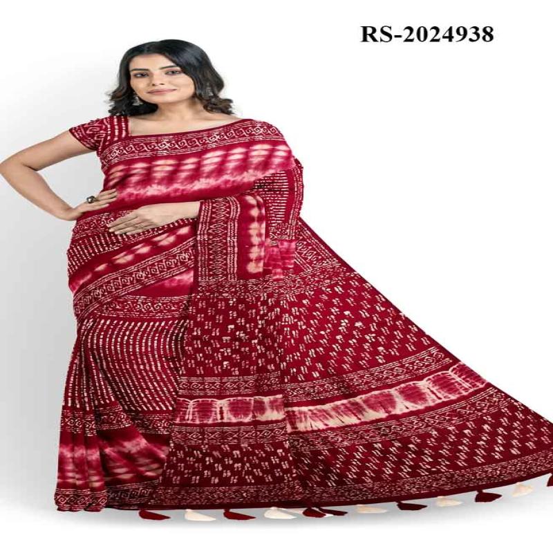 সিল্ক বাটিক টারসেল শাড়ী রানিং ব্লাউজ পিচ আছে