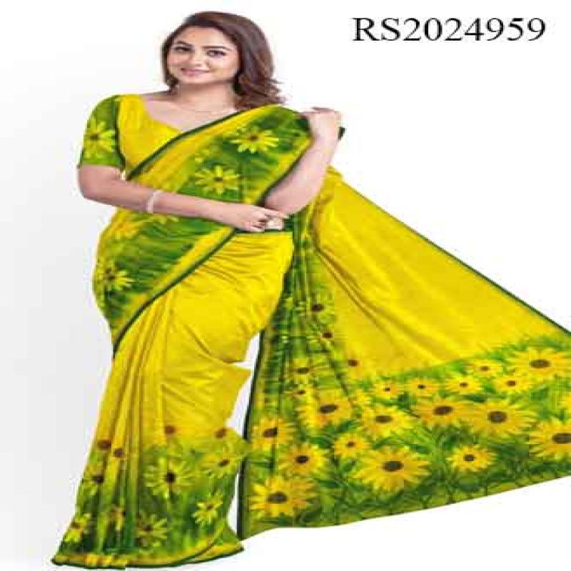 স্পেশাল হ্যান্ডপ্রিন্ট শাড়ী রানিং ব্লাউজ পিচ আছে