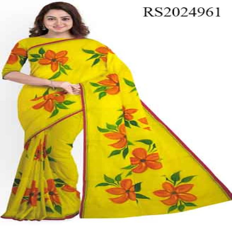 স্পেশাল হ্যান্ডপ্রিন্ট শাড়ী রানিং ব্লাউজ পিচ আছে
