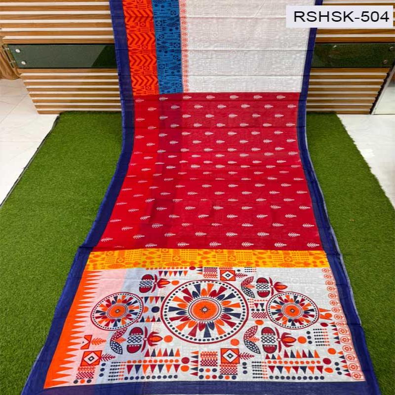 মসলিন ডিজিটাল বৈশাখী শাড়ি (ব্লাউজ পিস আছে)