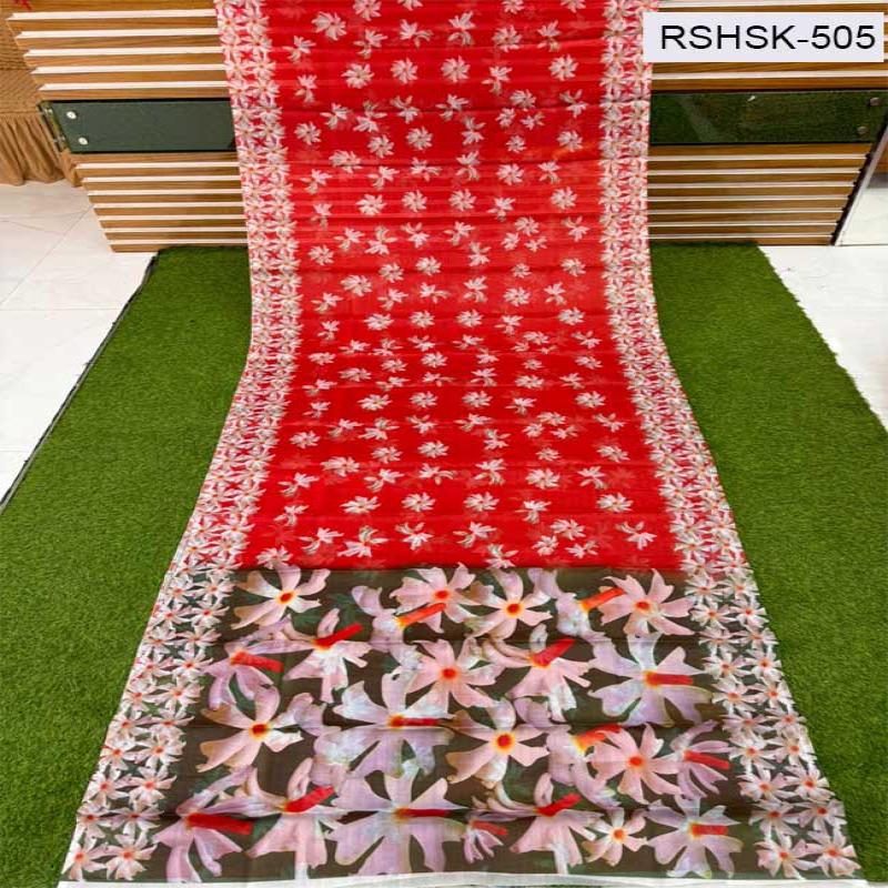 মসলিন ডিজিটাল বৈশাখী শাড়ি (ব্লাউজ পিস আছে)