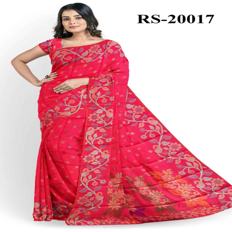 খুবই সফট টাঙ্গাইলের সিল্ক শাড়ি ব্লাউজপিস সহ