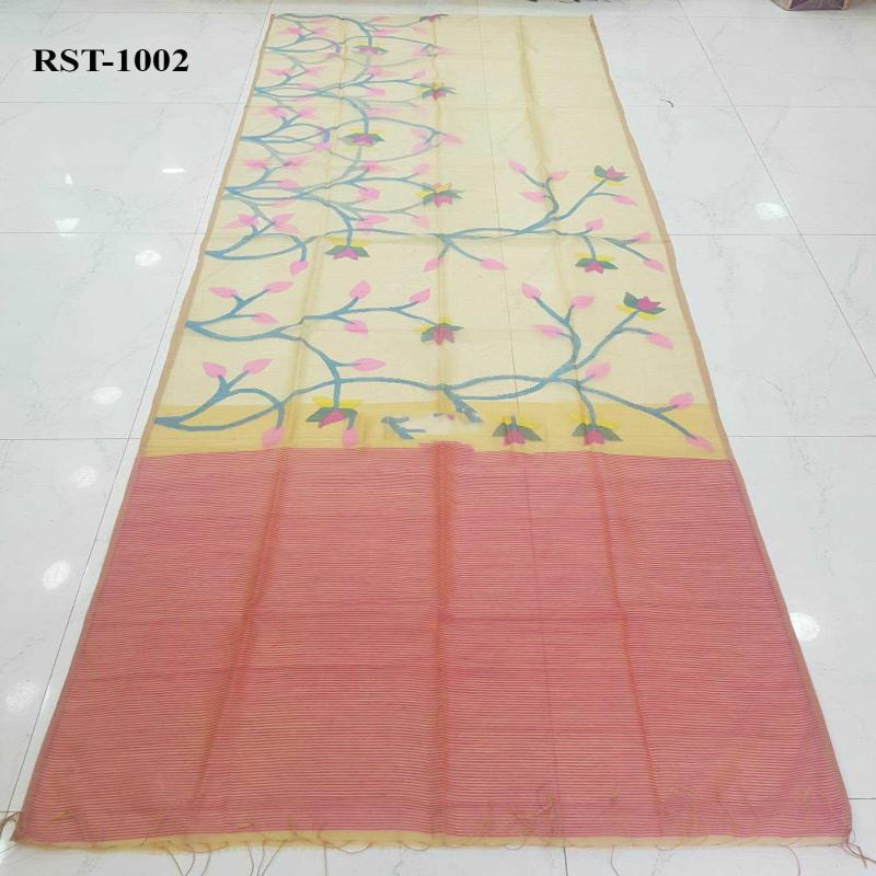পিউর মসলিন তন্তুজ শাড়ি ব্লাউজ পিস সহ