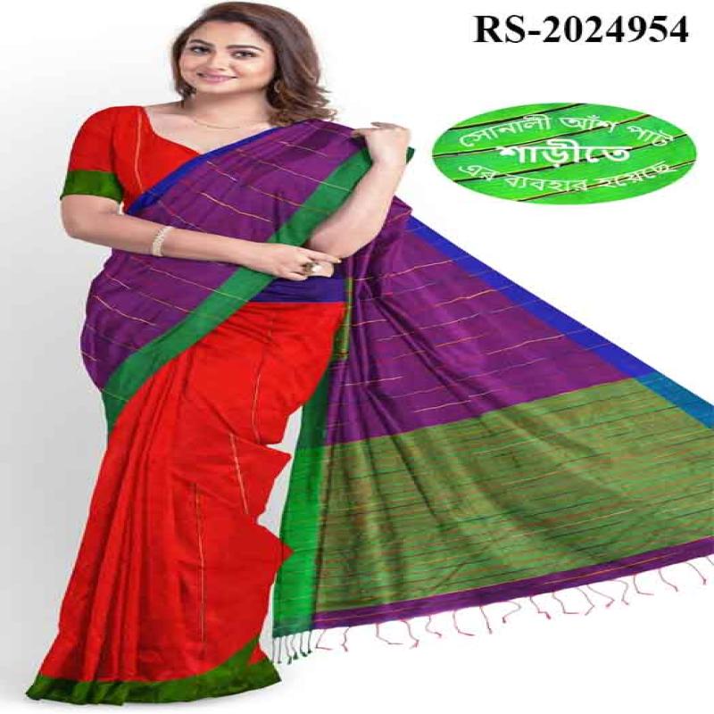 পাটলু শাড়ী সোনালী আঁশ পাটের ব্যাবহার হয়েছে শাড়ীতে। ব্লাউজ পিচ আছে