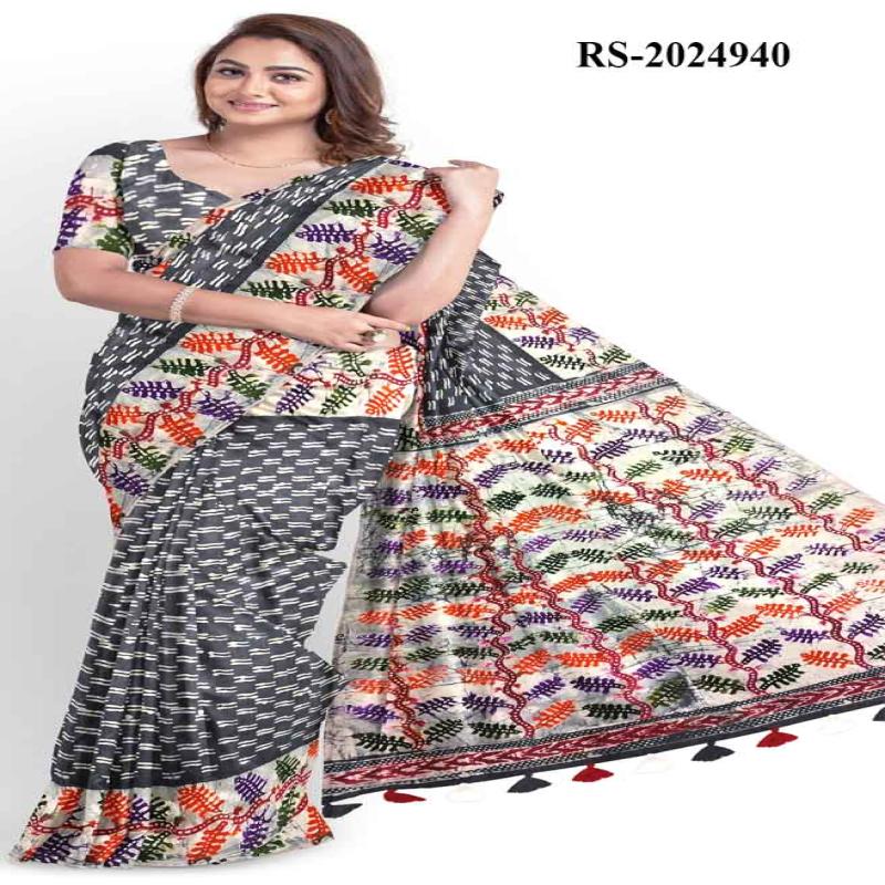 সিল্ক বাটিক টারসেল শাড়ী রানিং ব্লাউজ পিচ আছে